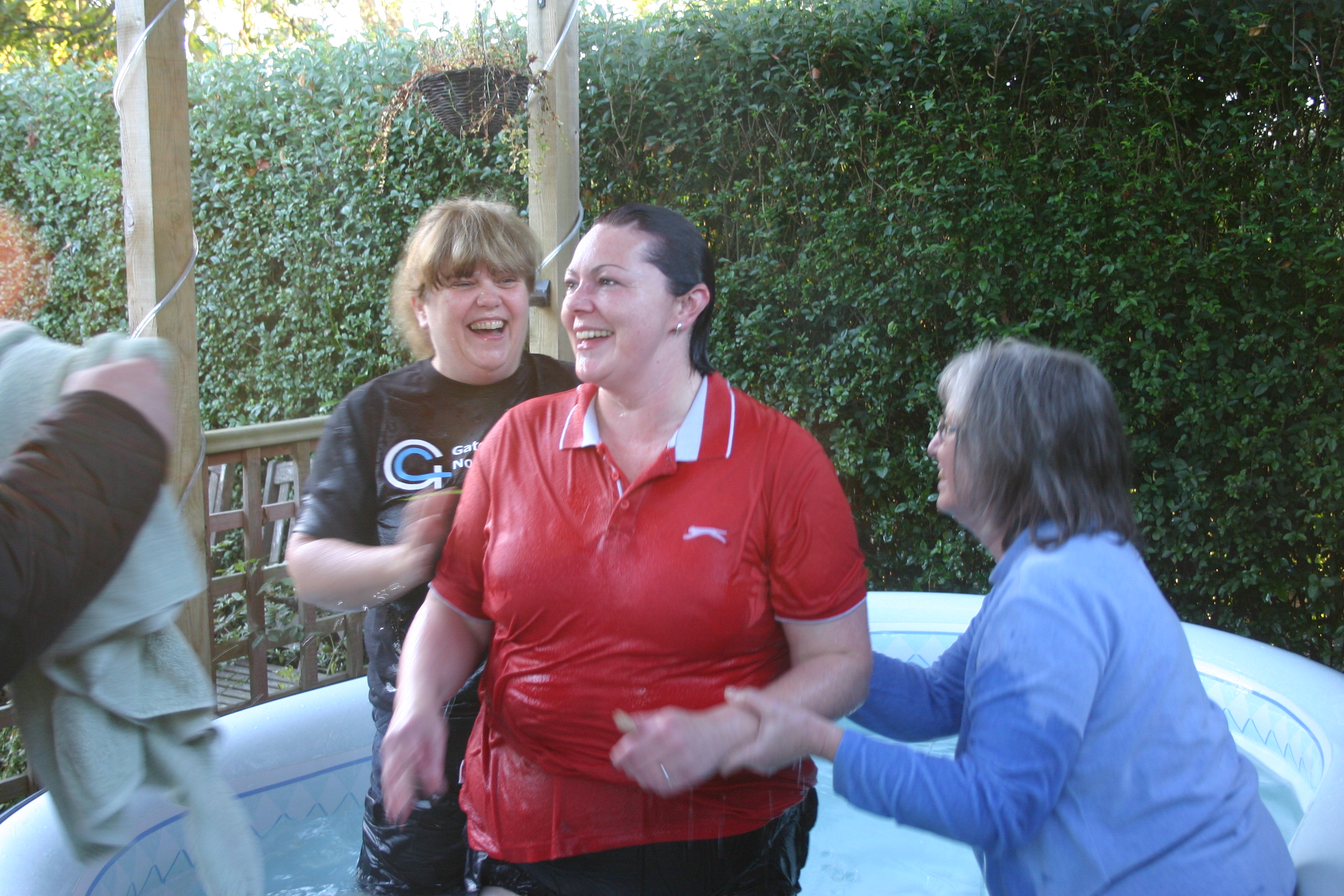 Gateway Church Northumberland celebrated with Sarah as she was baptised ~ in the hot tub in Gill & Joss’ garden! Sarah gave a great testimony of how God has changed her life and was then baptised by Gill and Joan. A fantastic day!![]()